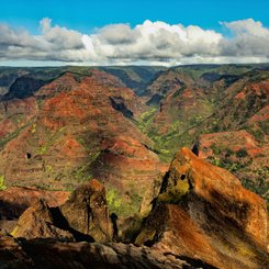 Als Mark Twain die Inseln besuchte, titulierte er den Waimea Canyon als “Grand Canyon des Pazifiks”. Sowohl die tiefrote Farbe als auch die Größe des Canyons sind außerordentlich. Ein früher Start am Morgen bringt uns zum fantastischen Aussichtspunkt Kalalau oberhalb der wilden Nordküste, die gut 1200m unter uns liegt. Anschließend wandern wir durch eine der feuchtesten Flecken der Erde, im berühmten Kokee State Park. Der Awa'awapuhi Wanderweg führt uns zu sagenhaften Aussichtspunkten über die Klippe. Bei regnerischen Tagen wandern wir zu der trockeneren Seite auf den Cliff/Canyon/Black Pipe Trails. Die Höhe von 1000 bis 1200 Meter sorgt für frische Luft. Mit etwas Glück können wir die gefährdete, hawaiianische Nene Gans beobachten. (Je nach Wetterverhältnissen wird der Reiseleiter die Wanderwege wählen). Wanderung: 5 Std, 15 km, Höhenunterschied: +/-500m