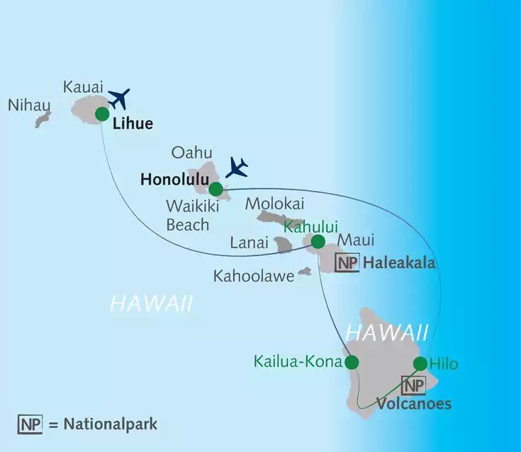 - Das Gepäck für die Inlandsflüge mit Hawaiian Airlines ist nicht im Reisepreis enthalten und muss beim Check-in vor Ort bezahlt werden.