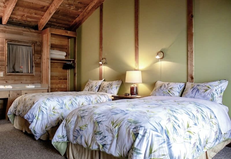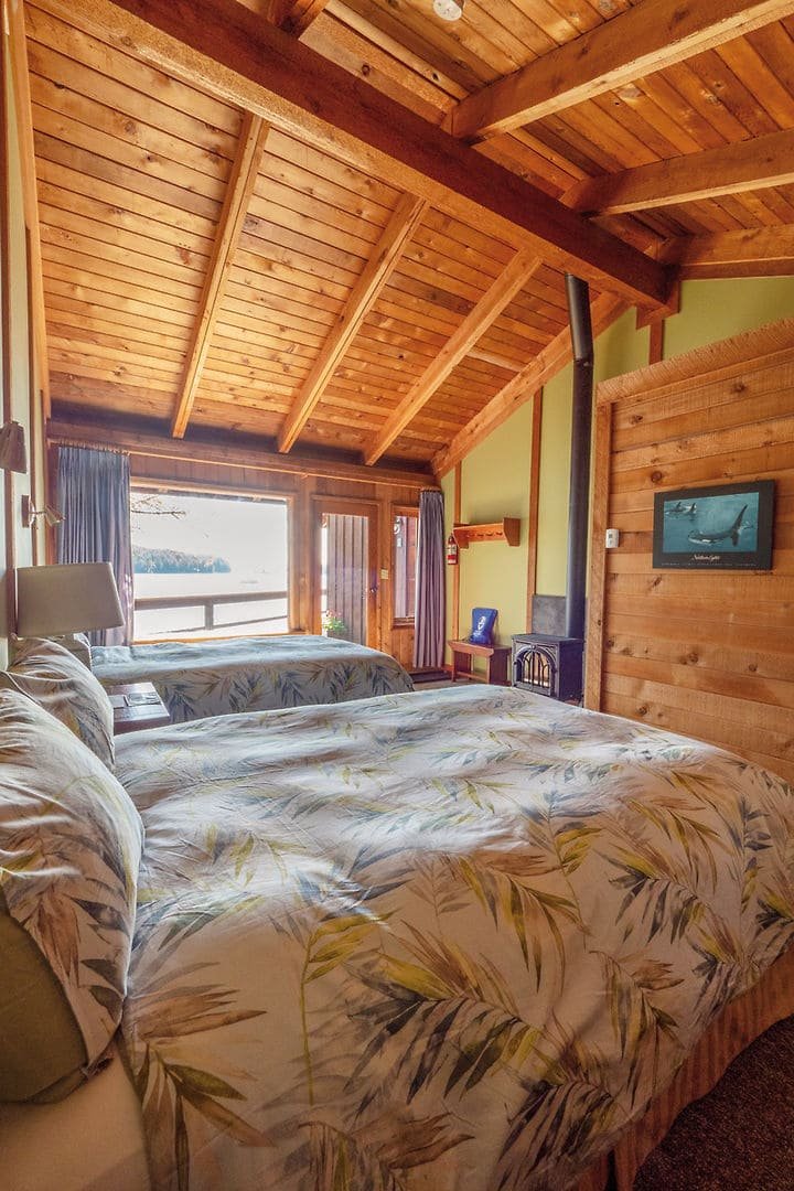 Die Farewell Harbour Lodge besteht aus einem Hauptgebäude an Land mit 8 angebauten Cabins, sowie einem schwimmenden Teil mit weiteren Zimmern, der über eine Rampe mit dem Hauptgebäude verbunden ist. Die Mahlzeiten werden gemeinsam eingenommen. Des Weiteren bietet die Lodge eine Bar, eine gemütliche Lounge mit Holzkamin sowie eine Panoramaterrasse mit spektakulärer Aussicht auf die Bucht. Die gemütlichen Zimmer bieten Bad/Dusche, WC, einen Ofen und 2 schmale Doppelbetten.