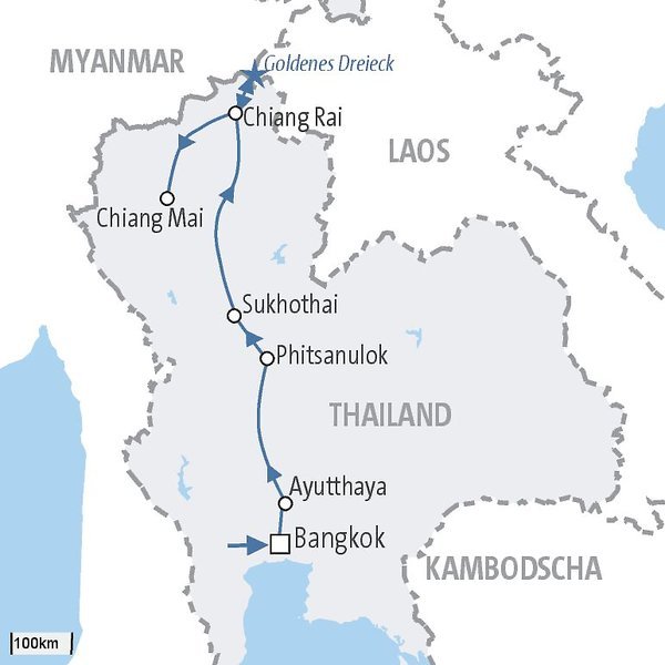 Bangkok Ayutthaya Phitsanulok Sukhothai Goldenes Dreieck Chiang Rai Tha Ton Chiang Mai