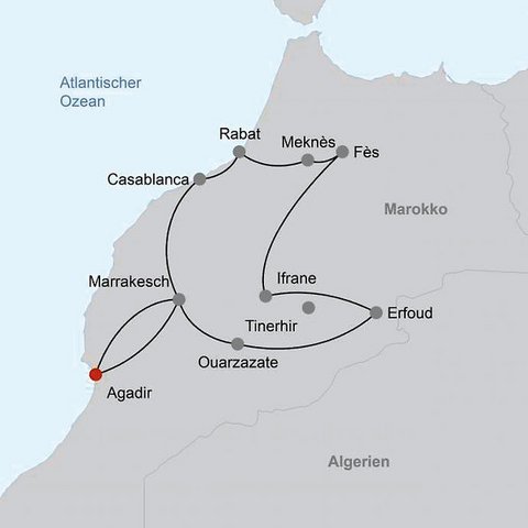 Agadir Casablanca Fès Erfoud Ouarzazate Marrakesch Agadir