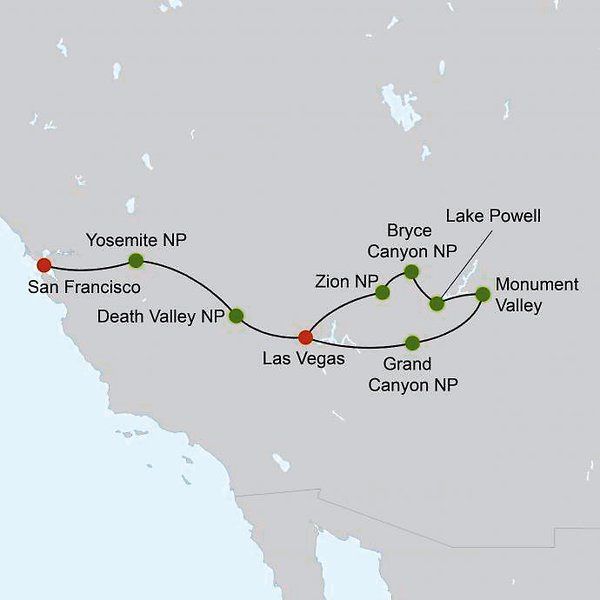 - Auch buchbar in umgekehrter Richtung ab Las Vegas bis San Francisco.