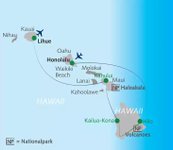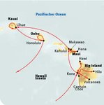- Besuch von The Island of Hawai´i (vormals "Big Island"), vulkanisch geprägt, das kontrastreiche Maui, die "Garteninsel" Kauai mit dem Waimea Canyon und der NaPali-Küste, und zum Abschluss Oahu mit Waikiki