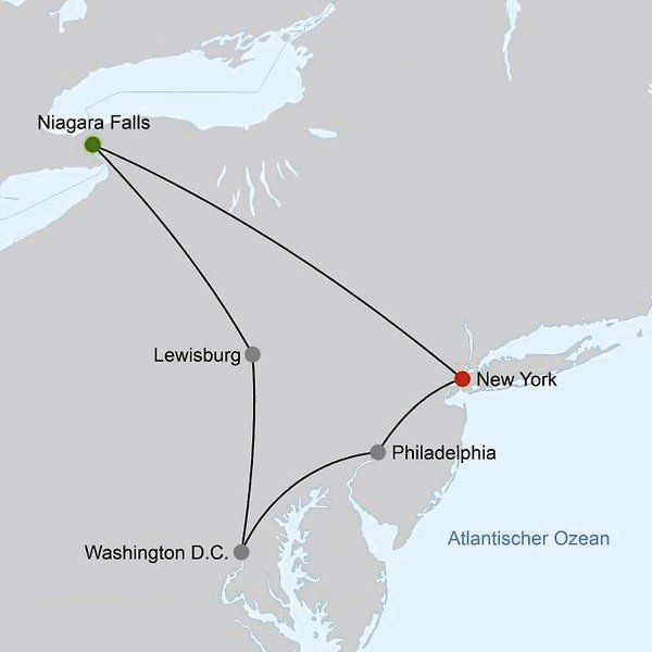 New York Niagarafälle Lewisburg Washington D. C. Philadelphia New York